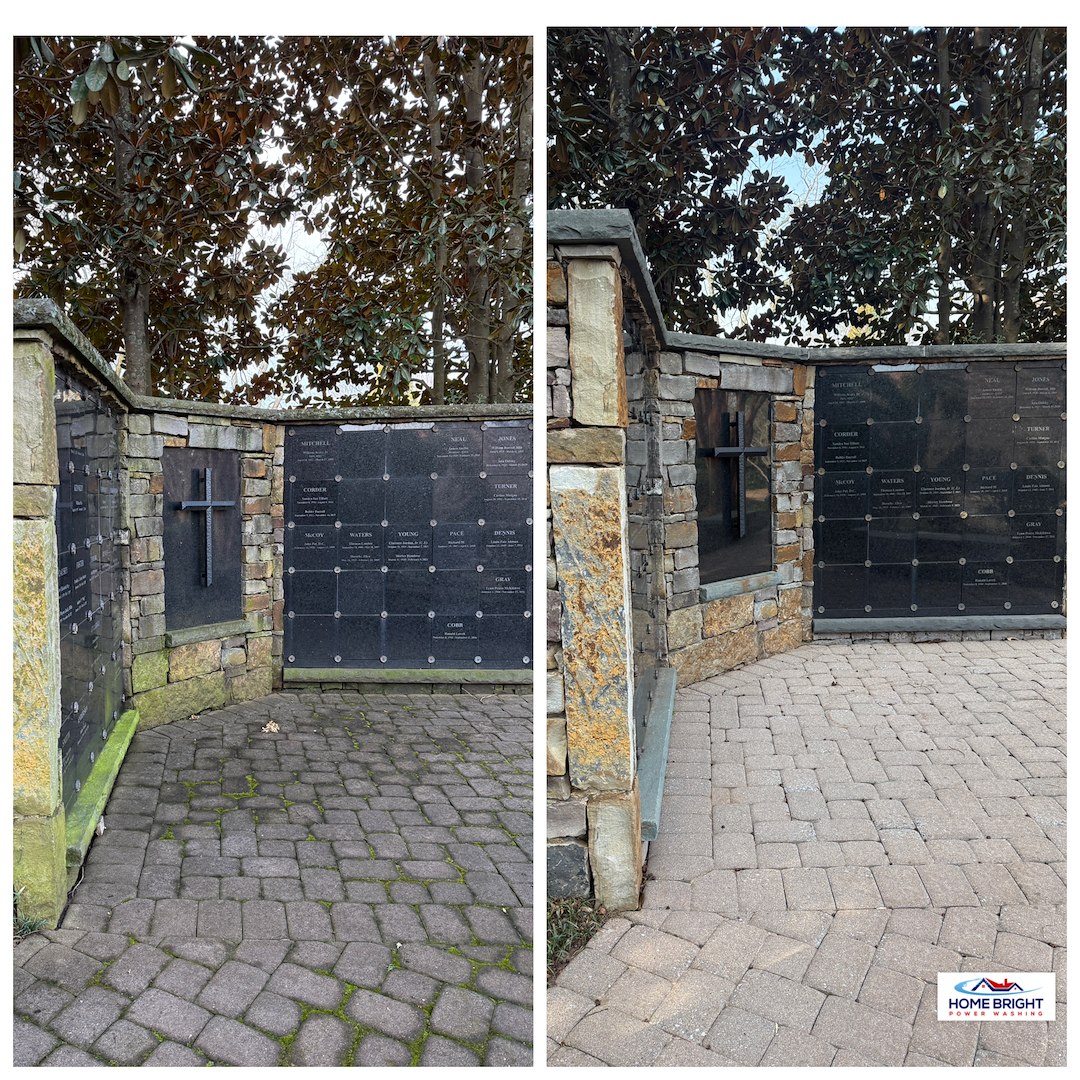 The project combined two cleaning approaches to match the needs of each area, giving First Baptist Church in Greenville a thorough, careful clean of sidewalks, the labyrinth, and columbariums. If your property in Greenville, SC needs similar soft washing or power washing services, Home Bright Power Washing can assess the surfaces and recommend the right method to protect and clean them.